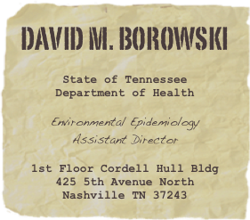 After being in Florida and Indiana, I found my first career job halfway between them in Tennessee. I worked for the Tennessee Department of Environment and Conservation’s Division of Community Assistance under a Pollution Prevention grant from the EPA for my first several years. I found a promotional opportunity in a growing Environmental Epidemiology Program within the Tennessee Department of Health. I now am the program’s Assistant Director and manage our Cooperative Agreement with the federal Agency for Toxic Substances and Disease Registry. I answer environmental public health questions through investigations of hazardous waste sites across the ninety-five counties of Tennessee.